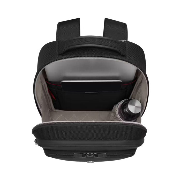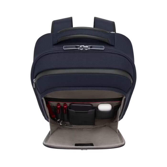 Organized business travel made easy with the Compact Backpack. Cleverly designed to integrate everything you need for work including dedicated business organization and electronic device compartment with anti-scratch lining. Stow and secure your work essentials while leaving space for personal packing too. This is the ultimate sleek and practical daily travel companion, offering exactly what you need to stay organized and prepared for your work day or trip. Plan your business trip knowing you have everything you need, exactly where you need it.
