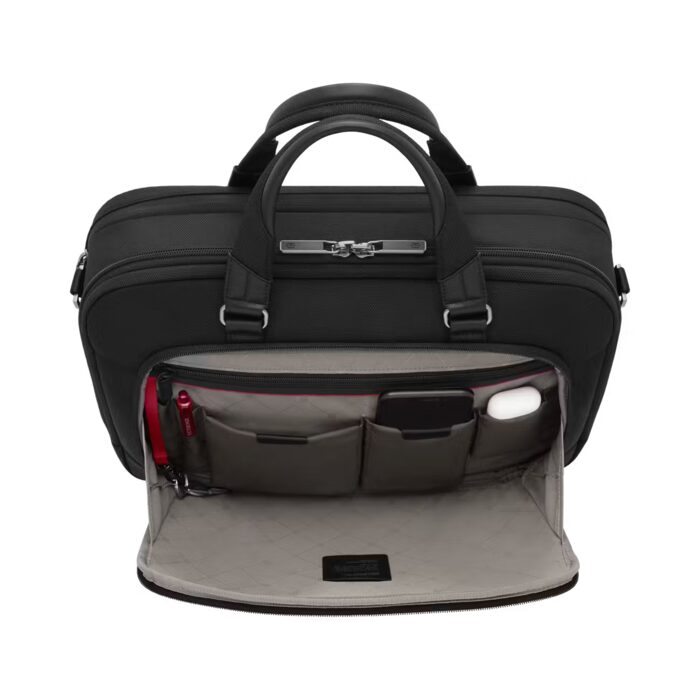 Integrate sleek elegance into your work commute with the Werks Traveler 7.0 Deluxe Briefcase . With cleverly designed internal business organization and an essential device compartment with anti-scratch lining, you can select, store and secure tech and other work essentials while saving some space for personal items. The Deluxe Briefcase is versatile enough to become your work travel essential.